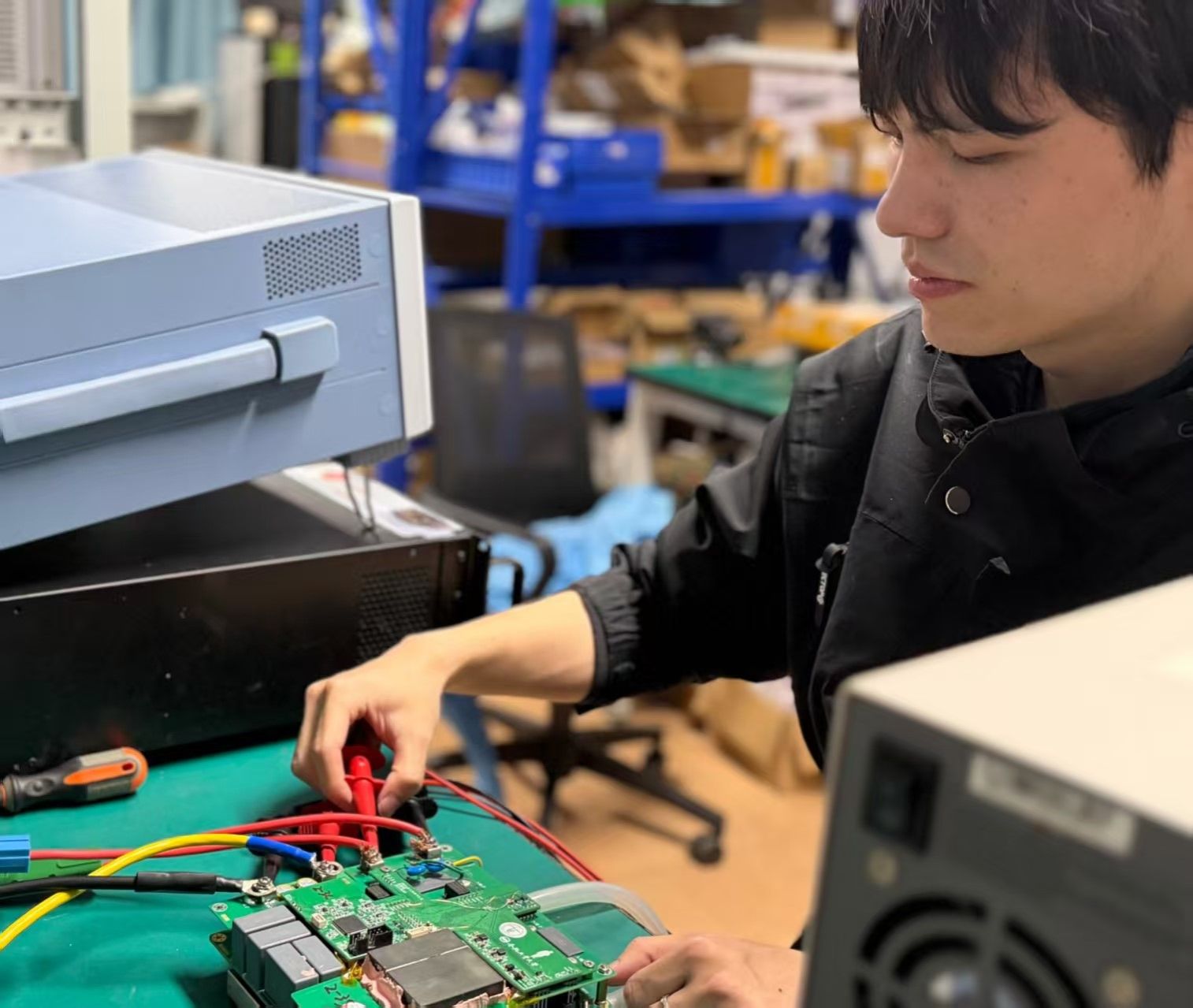 图3 恒爱精诚团队2024级博士生苏圣在调试参展样机